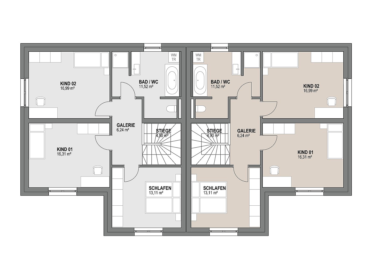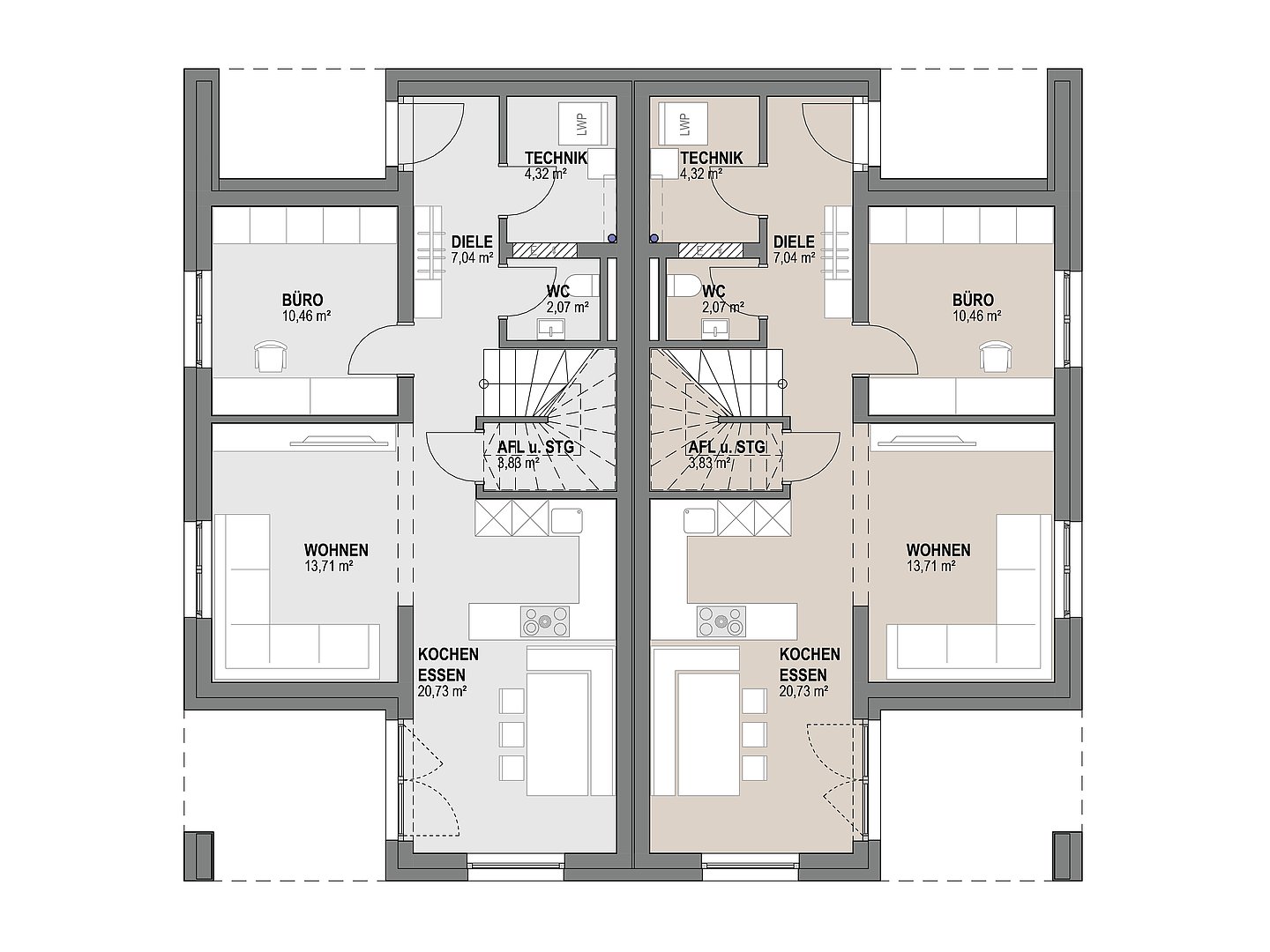 Mehr Platz für zwei Familien, zwei Generationen oder einfach doppelt so viel Lebensfreude. Mit den WALLY-Doppelhäusern wird gemeinsames Wohnen endlich wieder leistbar.