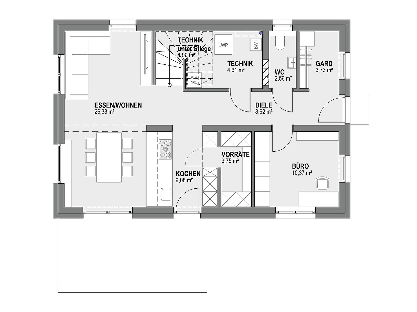 Unsere Systemhäuser überzeugen durch ein durchdachtes und erprobtes Konzept. Individuelle Anpassungen wie Änderungen an Fenstergrößen, Installationen oder dem Grundriss sind daher nicht möglich.