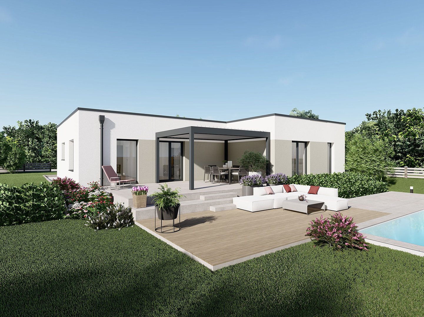 * Bauzone 1; Haus mit Flachdach; auĂen schlĂźsselfertig; innen belagsfertig inkl. Bodenplatte; Aktion gĂźltig bis 30. April 2026
