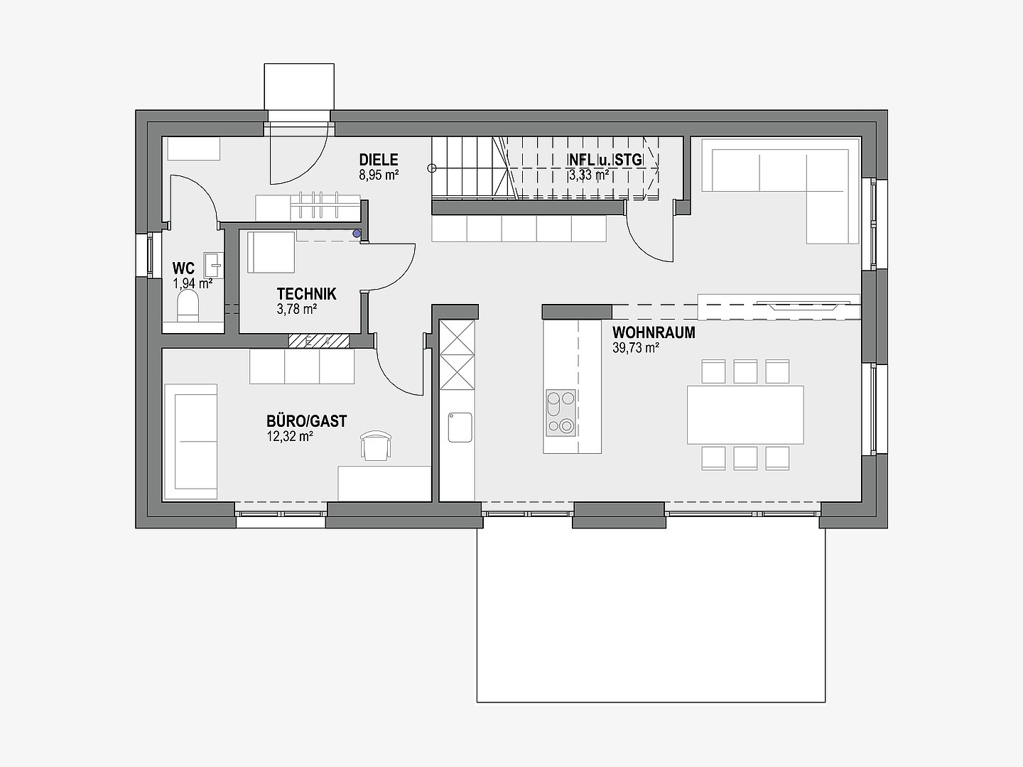 * Bauzone 1; Haus mit Flachdach; auĂen schlĂźsselfertig; innen belagsfertig inkl. Bodenplatte; Aktion gĂźltig bis 30. April 2026
