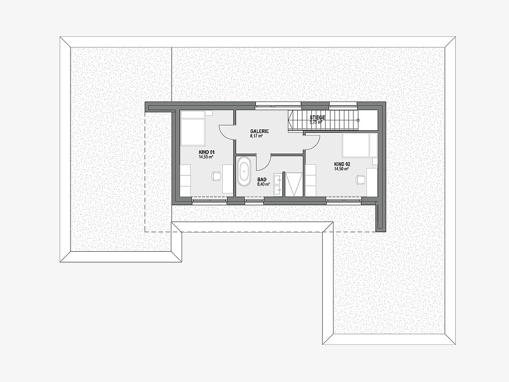 Das Bregenz 174 besticht durch seine moderne Architektur und klare Linienführung. Im Erdgeschoß überzeugt der offene Wohn-Ess-Koch-Bereich mit praktischem Vorratsraum sowie das Schlafzimmer mit eigener Ankleide. Im Obergeschoß befindet sich ein separater Kinderbereich mit zwei Zimmern und eigenem Bad, perfekt für die ganze Familie.