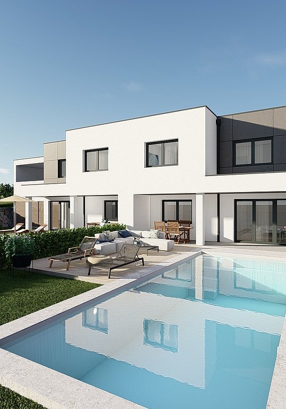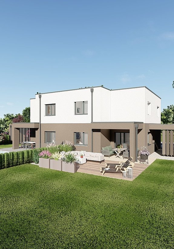 Bei unseren unterschiedlichen Doppelhäusern wurde darauf geachtet, die Privatsphäre der einzelnen Bewohner:innen zu schützen, um ein Zusammenleben so unkompliziert wie möglich zu machen. Durch separate Eingänge, getrennte Terrassen und einen ausreichenden Schallschutz zwischen den einzelnen Doppelhaushälften wird dies gefördert. Lassen Sie sich von unseren Doppelhäuseren inspirieren!