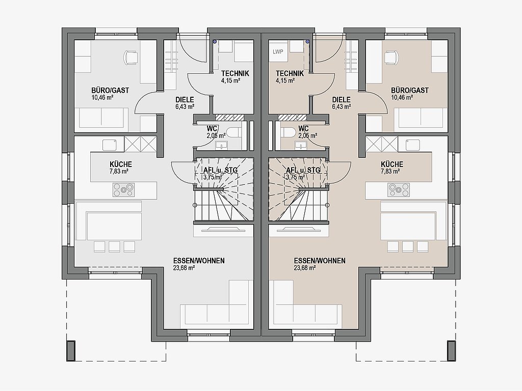 Raumaufteilung Doppelhaus 113