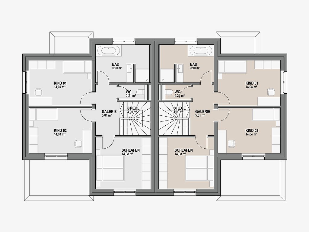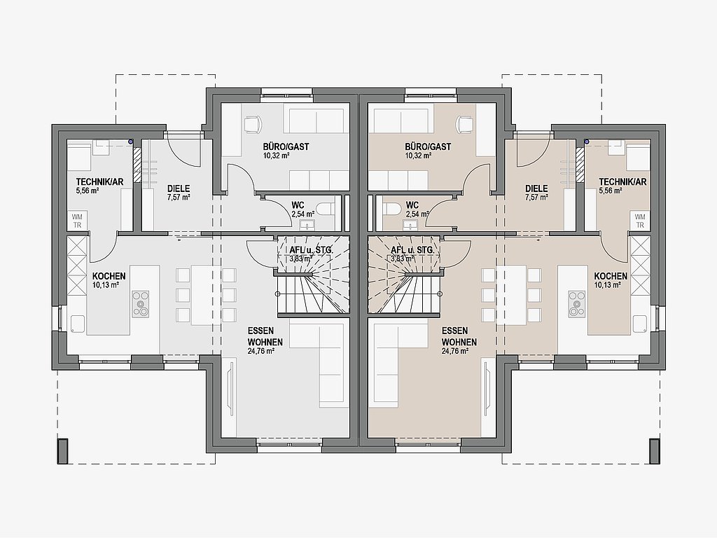 Raumaufteilung Doppelhaus 126