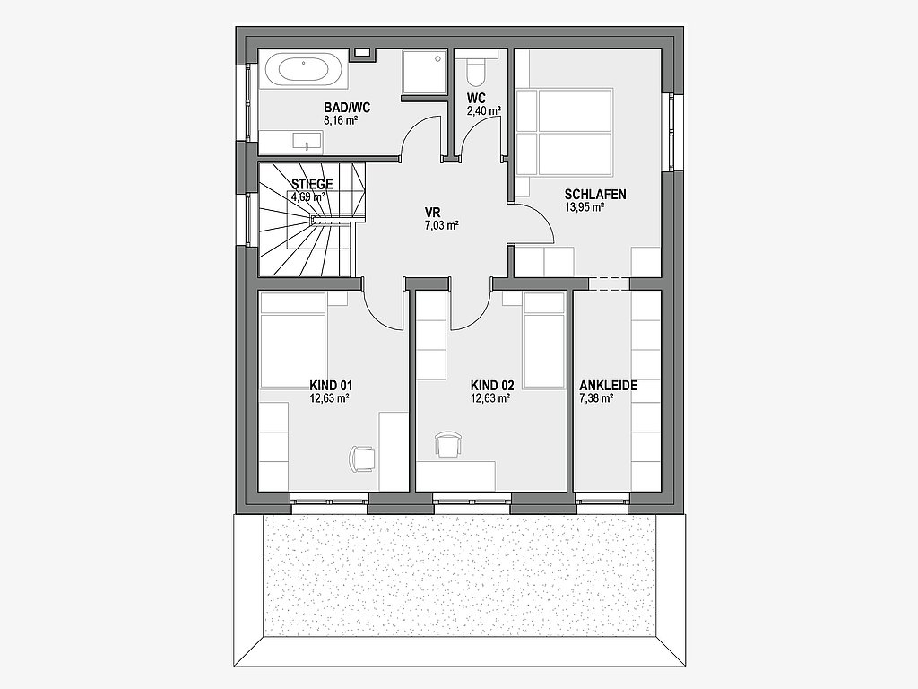 Mit einer GesamtflĂ€che von 143,89 mÂČ ist das Typenhaus St. Pölten 144 perfekt fĂŒr eine drei- oder vierköpfige Familie. Der groĂzĂŒgig gestaltete Wohn-Ess-Koch-Bereich sorgt fĂŒr WohlfĂŒhlambiente und lĂ€dt Freunde und Familie ein, gemeinsam Zeit zu verbringen. Im oberen Stockwerk findet neben dem Schlafzimmer mit Ankleideraum und zwei Kinderzimmern auch noch ein helles Badezimmer seinen Platz. GenĂŒgend Stauraum bieten das zusĂ€tzliche Zimmer im ErdgeschoĂ und der Hauswirtschaftsraum.