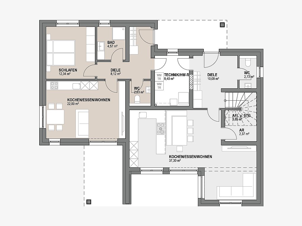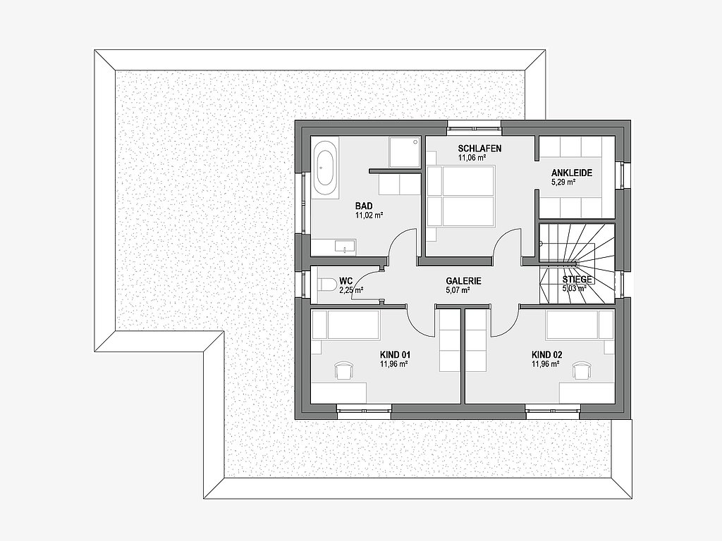 Das Typenhaus St. Pölten 174 2in1 bietet Platz fĂŒr zwei Familien unter einem Dach. Mit zwei Terrassen, zwei getrennten EingĂ€ngen und durchdachten Grundrissen vereint es Komfort, FunktionalitĂ€t und modernes Wohnen auf kompakte und flexible Weise.