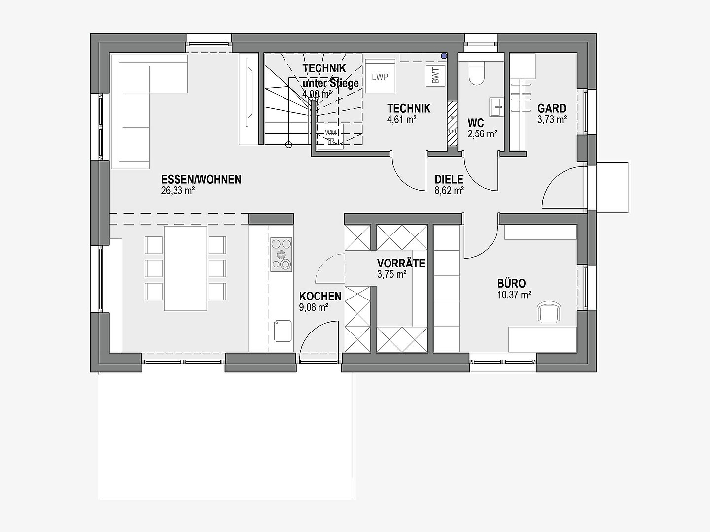 WALLY 142, ein moderner Haustyp, der von Anfang bis Ende durchdacht sind: architektonisch clever geplant, effizient gebaut und bezugsfertig um